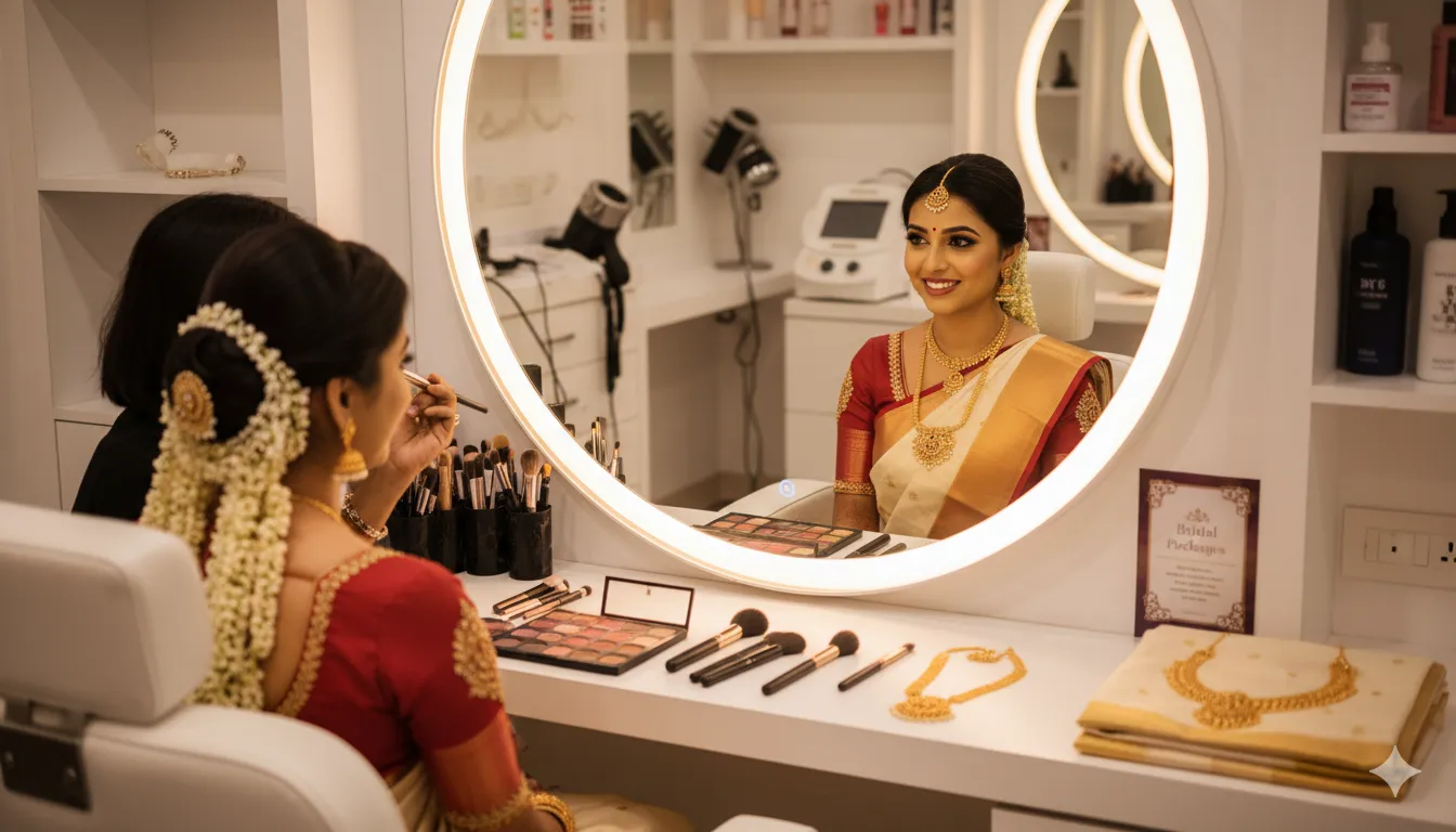Kottayam has emerged as a premier destination for bridal beauty services in Kerala. With its unique blend of traditional aesthetics and contemporary techniques, the city offers brides access to world-class makeup artistry that understands the nuances of Kerala’s tropical climate and diverse cultural celebrations. From the pristine white Kasavu sarees to ornate silk ensembles, your makeup must complement not just your attire but your personality and the sacred moments you will cherish forever.