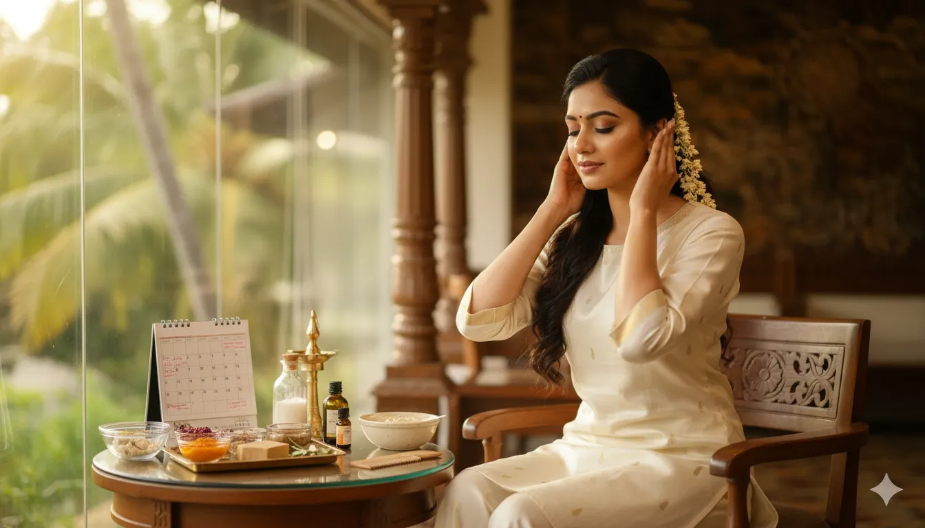 Establish a consistent at-home routine including gentle cleansing, vitamin C serum for brightening, and broad-spectrum SPF 50+ sunscreen. Kerala’s intense sun makes sun protection crucial for preventing last-minute pigmentation.