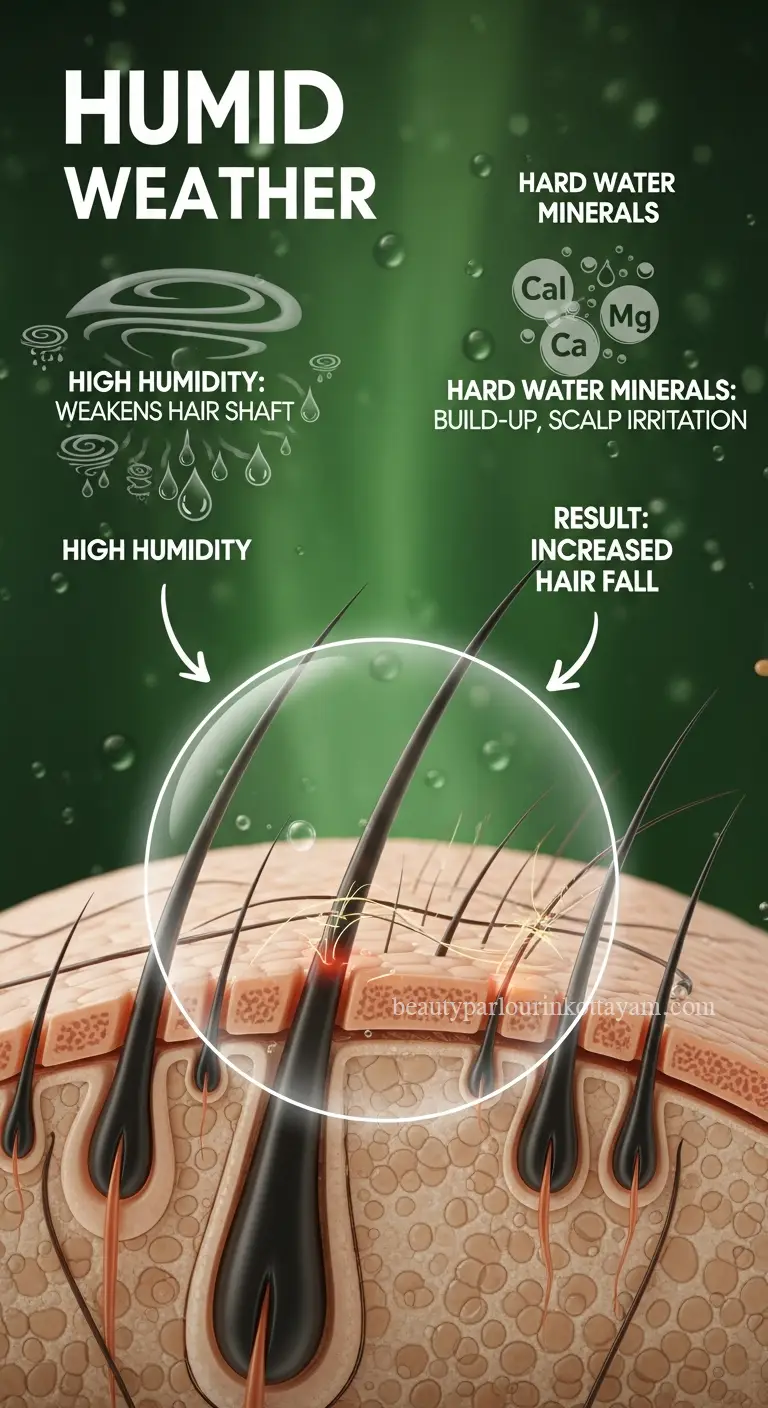 Kottayam’s groundwater is rich in minerals that leave residue on the scalp, blocking follicles and reducing nutrient absorption.