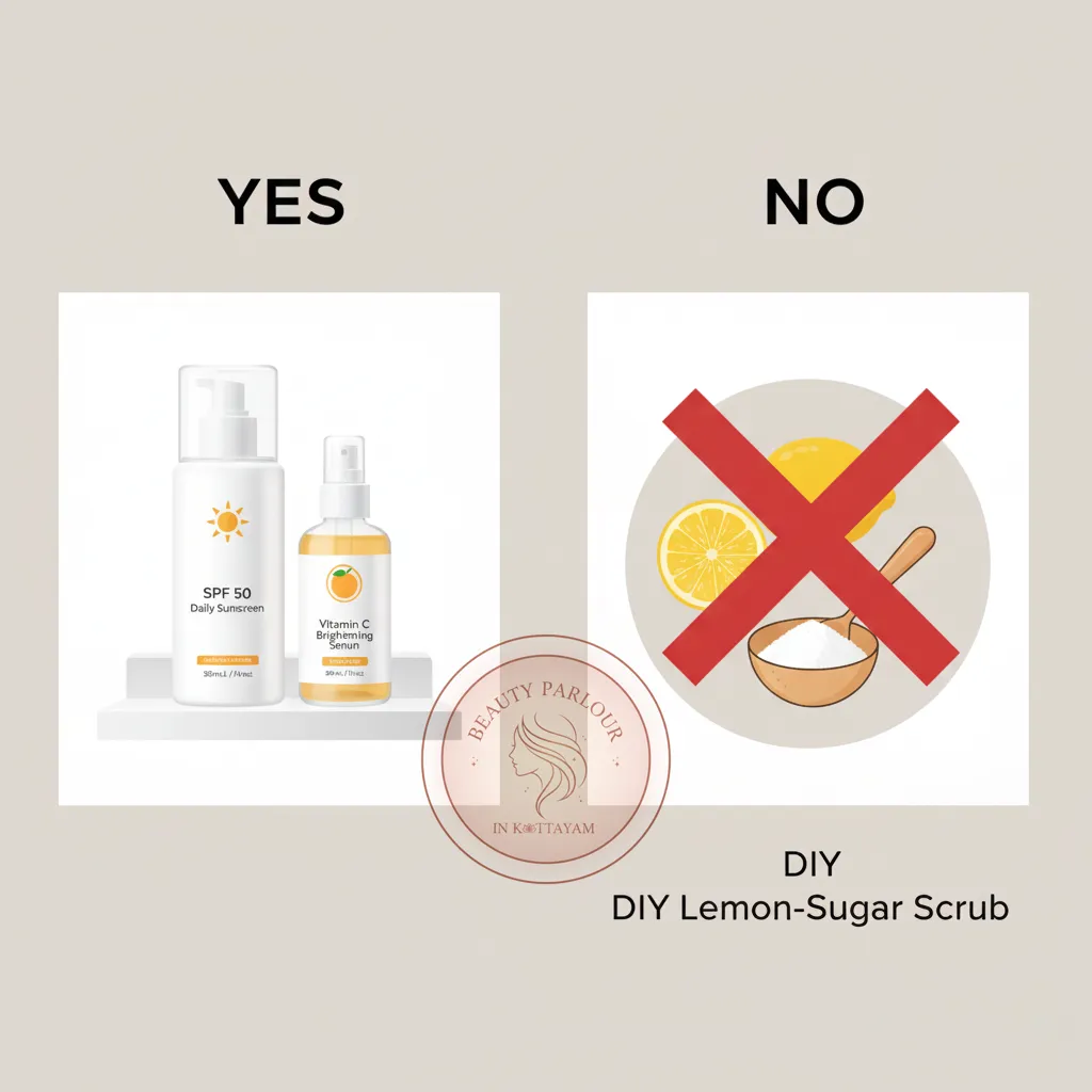 This program combines gentle clinical-grade actives (available OTC), Ayurvedic oils, and lifestyle tweaks designed for humid Kerala weather. Always patch-test first.